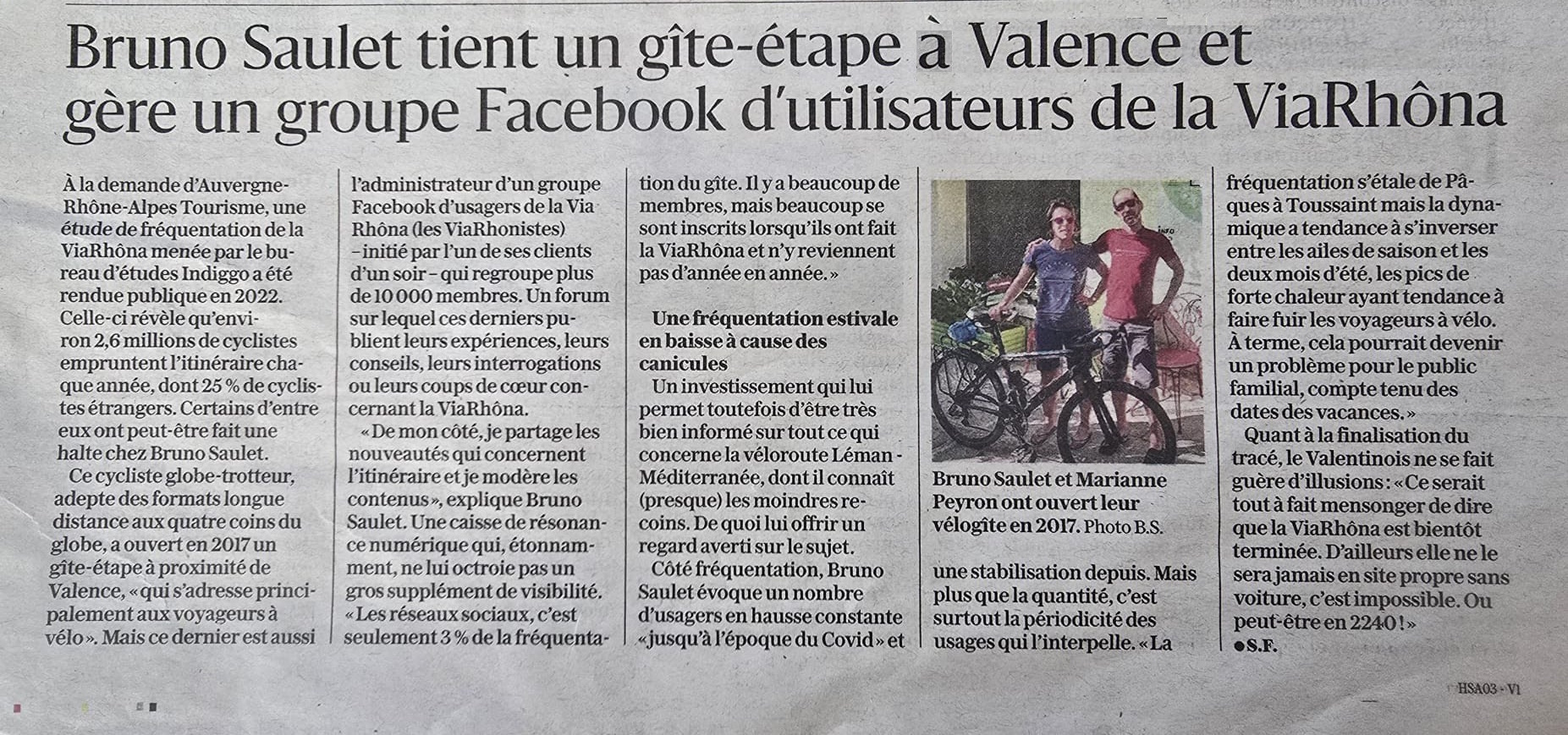Reportage FR3 Rhône-Alpes sur la Viarhôna : cliquer ici avec un petit film au vélogîte